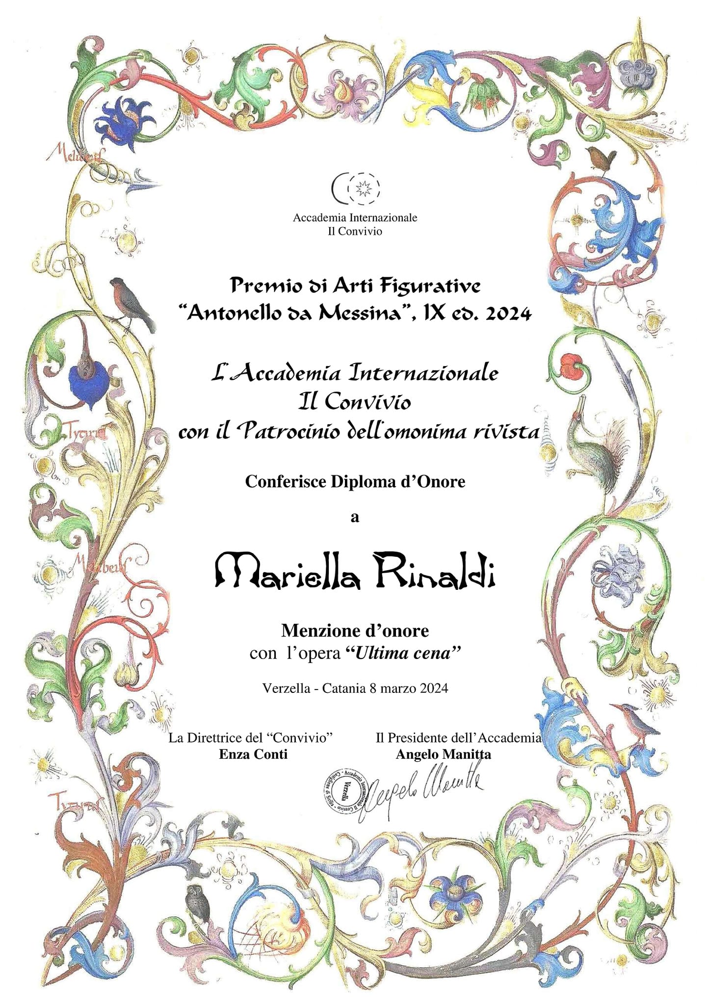 l'Accademia Internazionale "Il Convivio" Premio di Arti Figurative "Antonello da Messina" IX Ed. 2024 - Diploma d' Onore
